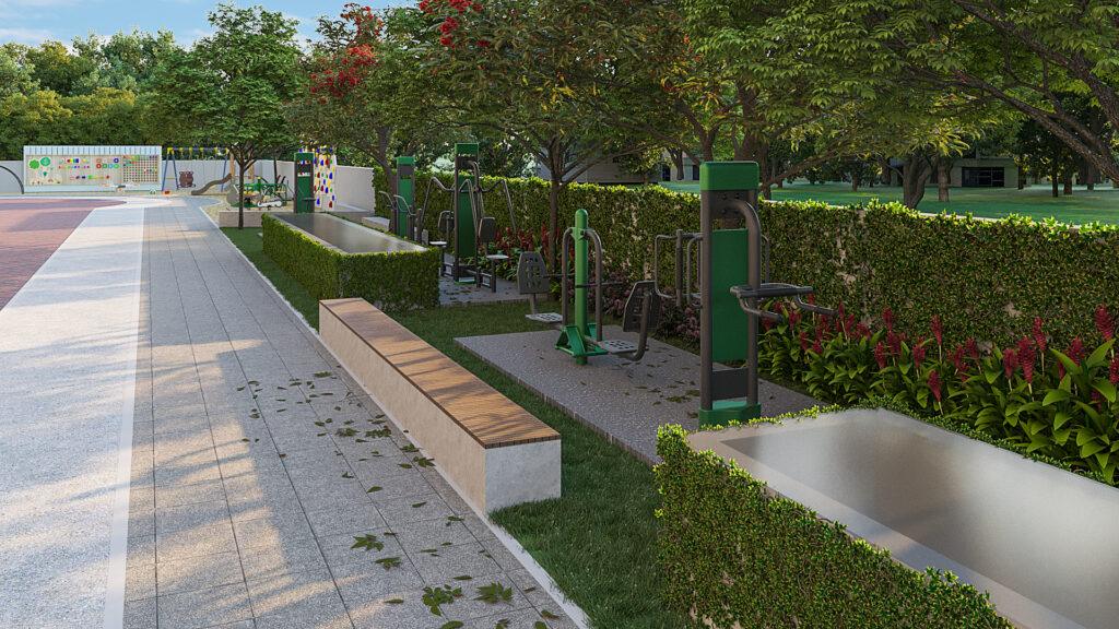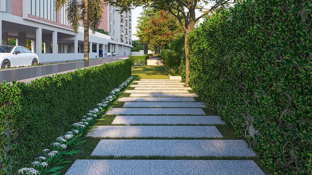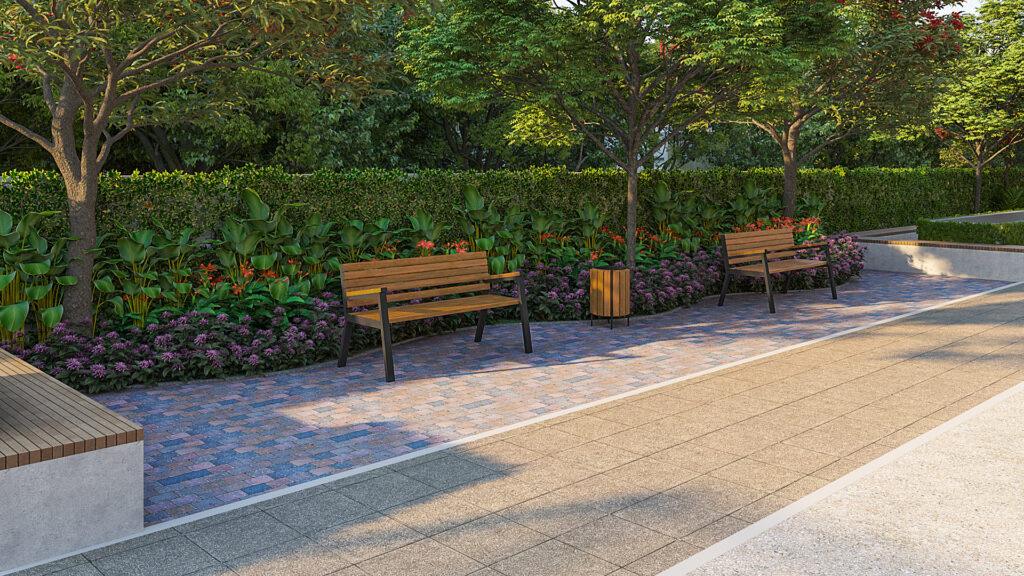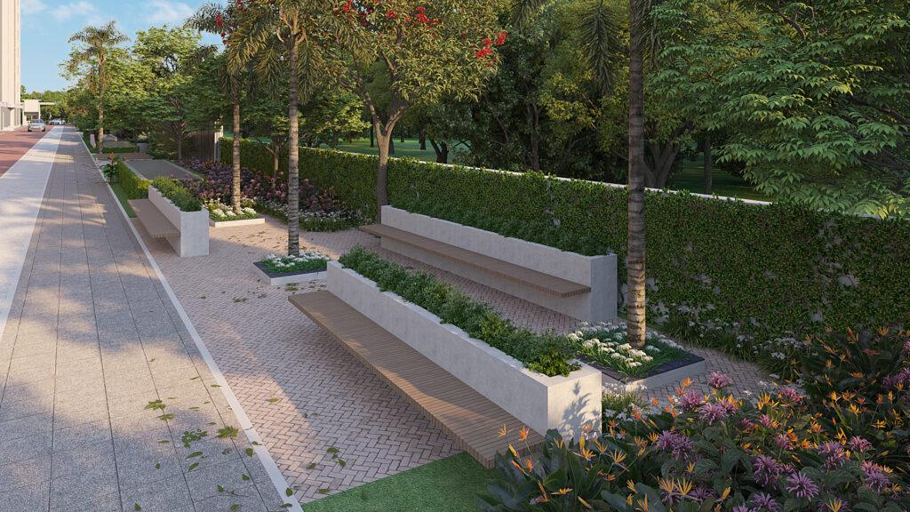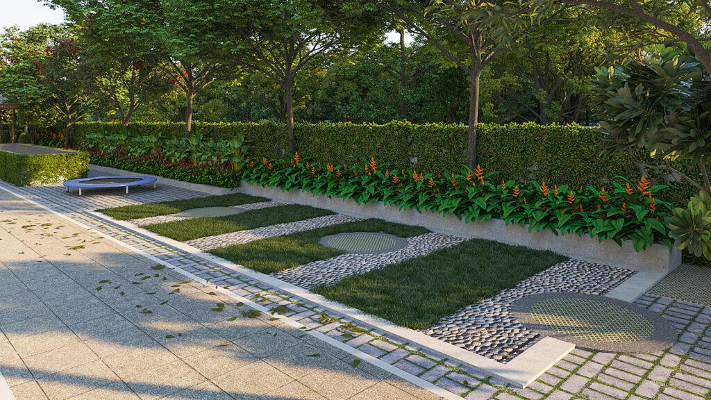 Landscaped sit-outs, gardens, and water bodies for a cooler, greener environment