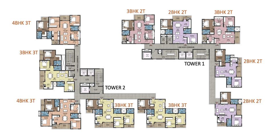 2 BHK – 1,280–1,313 sq.ft. 3 BHK – 1,500–1,747 sq.ft. 4 BHK – 1,889–1,919 sq.ft.